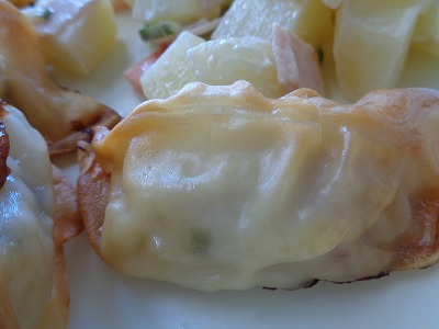 焼きぎょうざは、皮がパリッとするようによく焼きました。