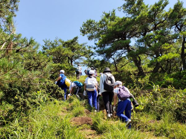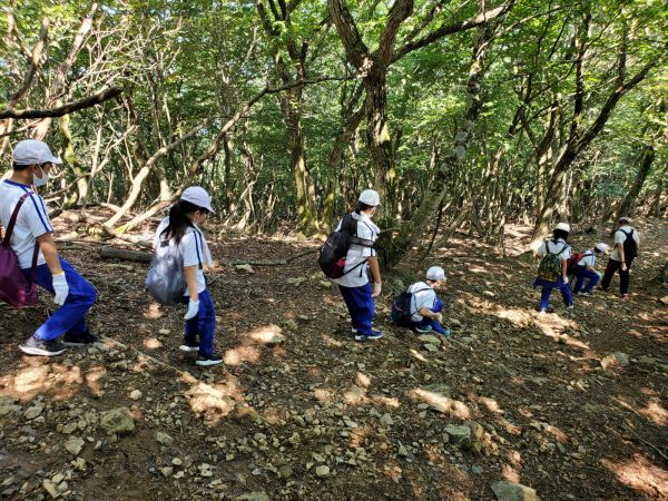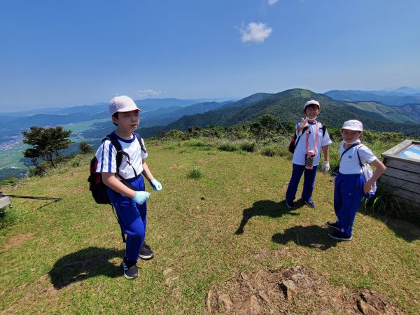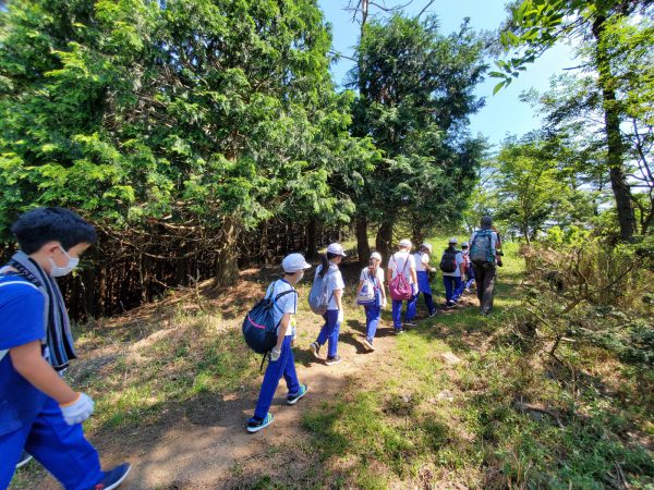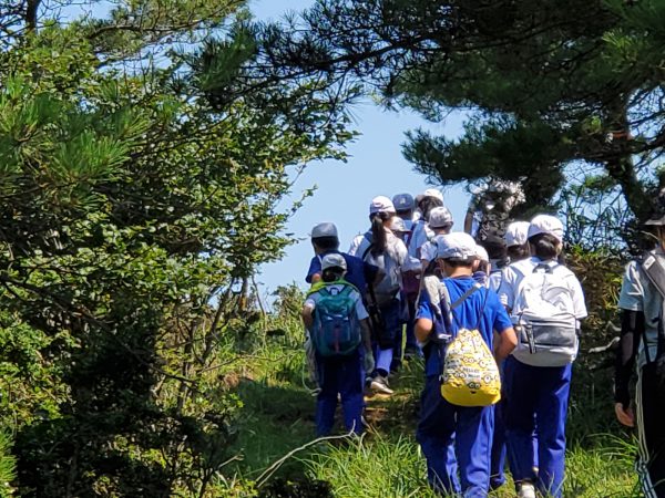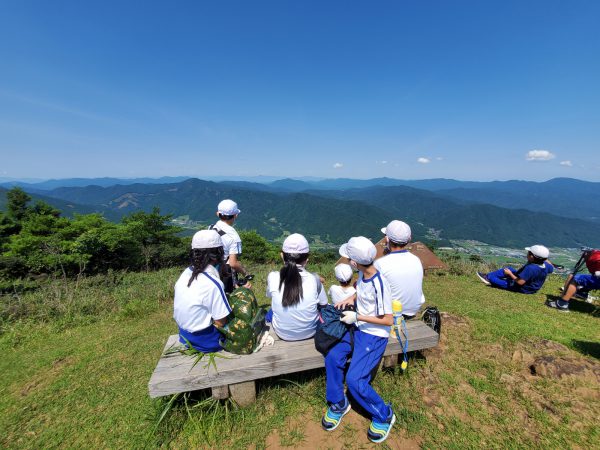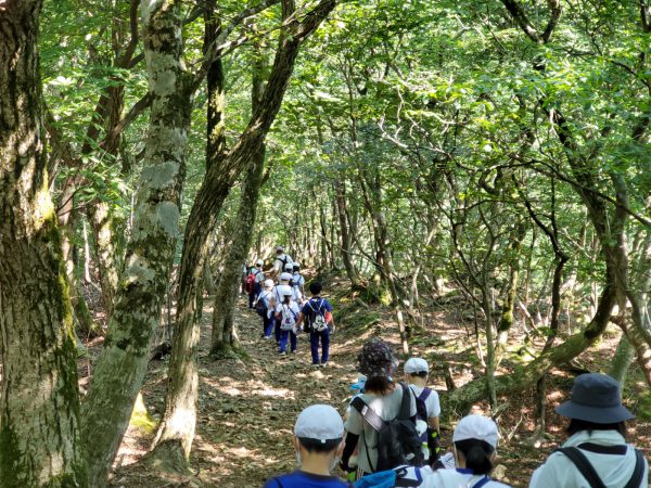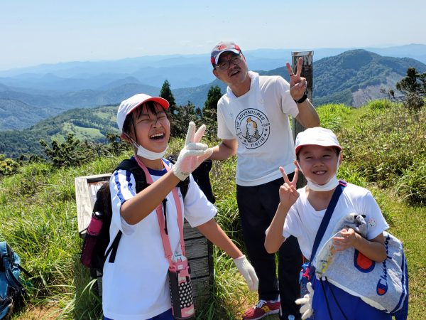 大江山連峰の尾根を縦走する子ども達。