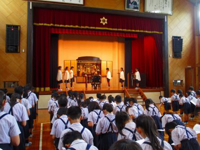 また、児童会メンバーである全校生は、拍手で「ありがとう」の気持ちを表しました。