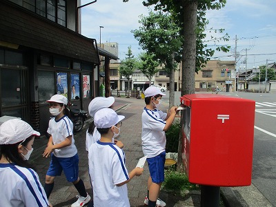 みんなで近くのポストに投函しました。どんな笑顔が待っているでしょう。