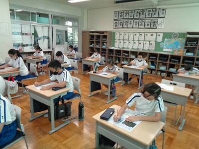 5時間目の理科では、夏の生き物や夏の星座についてのテストを行いました。