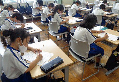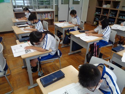 昨日、課題図書の読み聞かせが全て終了し、読書感想文を書き始めた3年生です。まずは、あらすじのまとめから。時系列で内容をふりかえりつつ、下書きを書いていきました。