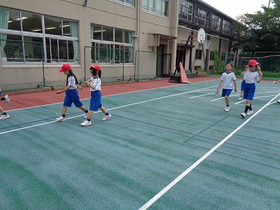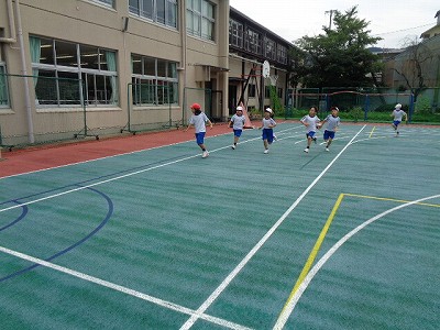金曜の朝、根っこマラソンの様子です。小学校運動場を走り抜ける3年生、全体的に途中でペースが落ち気味でしたが、最後まで頑張って走り抜きました。