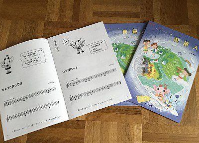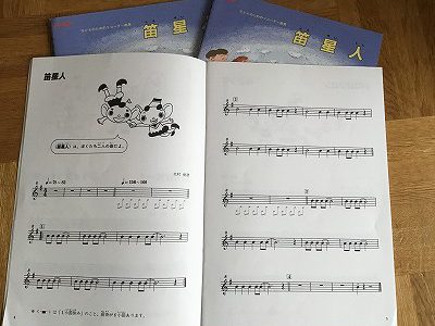 この『笛星人』は、音楽室に1人一冊で用意しているテキストです。リコーダーの初期学習に有効な教材と捉えて、導入しています。このテキストの魅力の第一が、子ども達の心を惹きつける“題名”です。