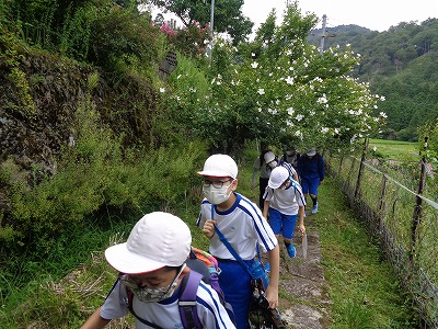 和紙うちわアートを終え、二瀬川沿いのハイキングに出かけました。