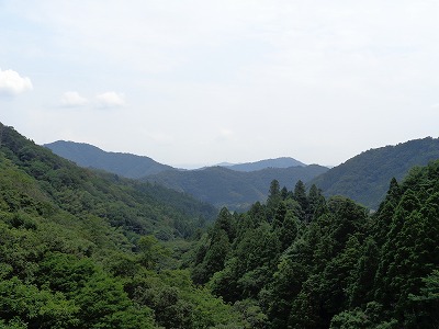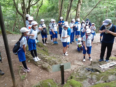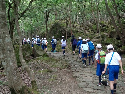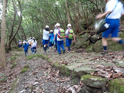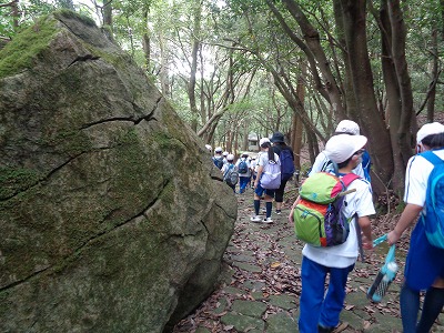 ハイキングコースに入りました。古道を歩きます。遠い昔から街道であったことを、この石畳が語っています。蝉など、虫たちが前を横切ります。