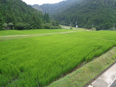 ロッジに戻りながら、子どもたちは青々とした稲を見ていました。ゆったりとした気分を味わっています。