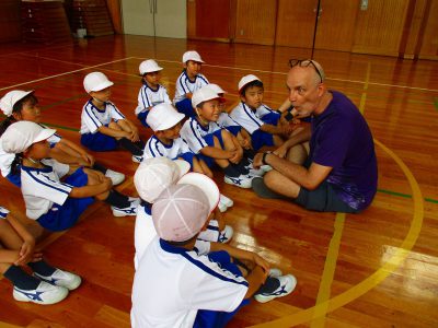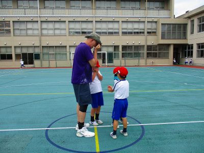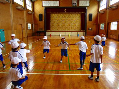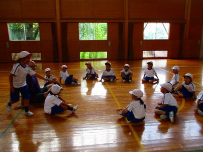 実はサマースクール開始直前に、ハンカチ落としの発展版「とんぼと蚊」のゲームをしていました。