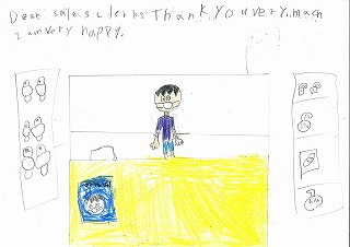 今週は4年生からのメッセージです。英語の授業で、いろいろなお仕事の英語名に触れたあと、"Thank you very much." などを添えて 仕上げました。