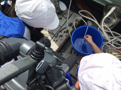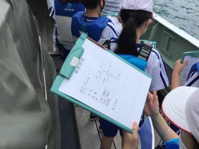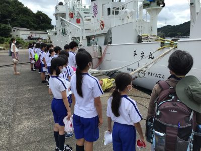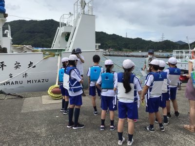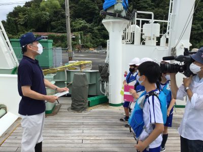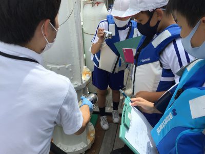 次に外へ出て、海洋調査船【平安丸】に乗船させていただき、『観測体験』をしました。
