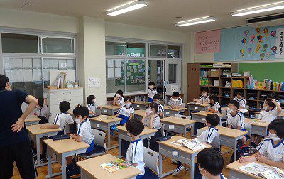 そこで、日頃使っているテキスト「Let’s Go 2」を持ち帰ったことと思います。お子さんが知っていることを伝えてくれるかもしれません。学習はUnit 2まで取り組んでいます。また、2学期にテキストをお持たせいただきますよう、よろしくお願いします。