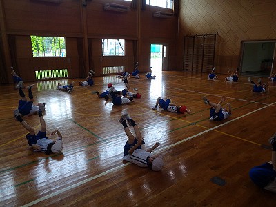 みんなでストレッチ運動やリレー、ドッジボールに取り組み、汗を流しました。