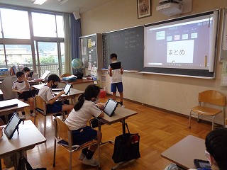 今日は、ロイロノートを使ってまとめた「水産業」の調べ学習を発表しました。自分が選んだシンキングツールを使ってしっかり調べたことを、上手に発表していました。