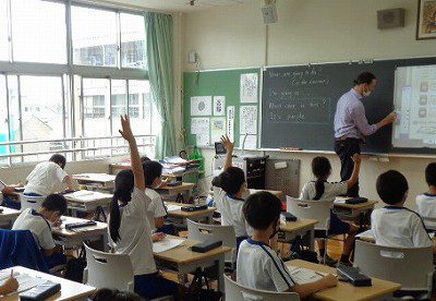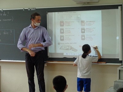 子ども達が前に出て、スクリーンにていねいに書き込んでいました。