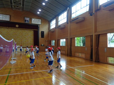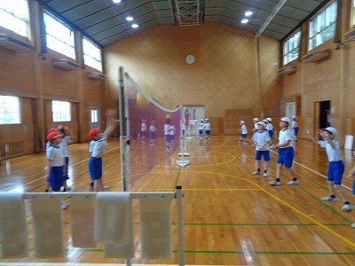 昨日もお天気が悪くてバレーボールに取り組んだのですが、今日も体育の直前に雨が降ってきて、体育館でバレーボールとなりました。