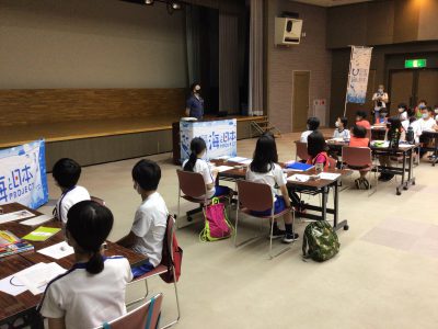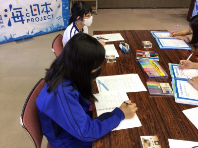 「御食国若狭おばま食文化博物館」の見学を終えて、場所を移し、次は「サバ」をテーマに学習している【長野県の海プロ参加の小学生】と出会いました。合同で「サバ缶」のパッケージデザインと「海を守るために私たちができること」について考える場を持ちます。その後も、合同で学習成果の発表会を計画しています。