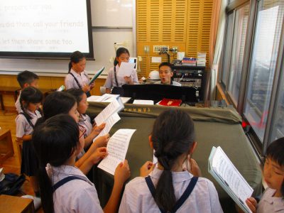 野々垣先生が、新しい練習曲「夏は来ぬ」を紹介してくれました。