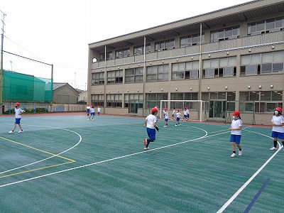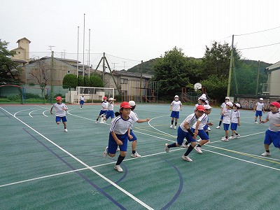 体育の時間。今日は、みんながすっかり心を奪われた「王さんとり」と、リレーをしました。どちらもコロナ感染防止バージョンで行いました。少し面白さに欠けますが、それでも、思いっきり楽しんでいたようです。
