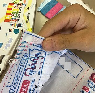 「これで、(縫い方が)あってるかなあ?」と心配な様子…大丈夫!玉どめまでいきて、見事ゴールでした。