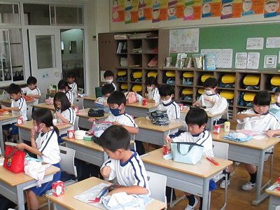 1年生のなかには、お弁当の中にきゅうり、トマト、ピーマンなど「夏野菜」が入っていることを嬉しそうに教えてくれる子どもたちがいました。毎朝、おいしいお弁当を準備してくださった保護者の皆様、ありがとうございました。