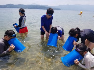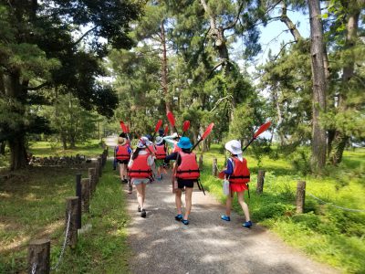 ここでは、2班に分かれて「シーカヤック体験」と「海の生き物調査」をします。