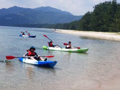 天橋立の雄大な自然を眺めながら、シーカヤックを体験できました。