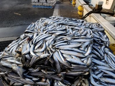 ブリのえさとなる、大量のイワシです。