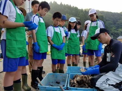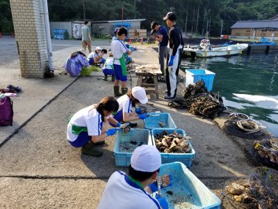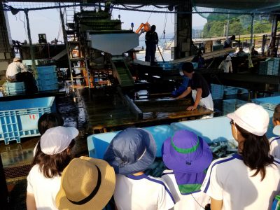 早朝から、養殖業について貴重な体験学習ができた子ども達です。