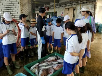 船を降りてから、水揚げされた大小様々な種類の魚を見ることができました。