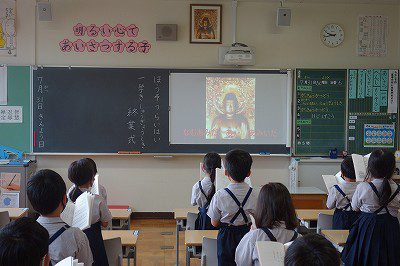 その前に、勢至丸さまに一礼をする一年生です。「今日もよろしくお願いします。」