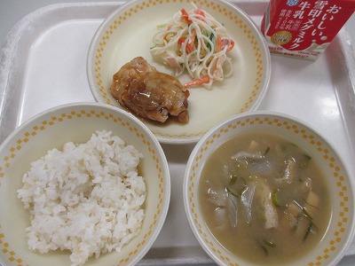 【給食「鶏肉の照り焼き」他】