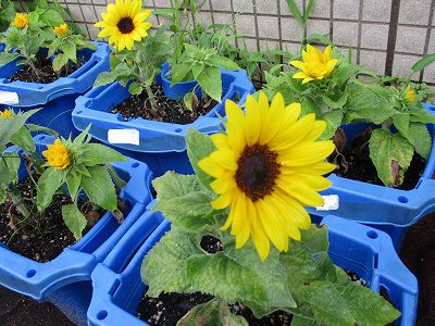 この土日の間に、4年生が育てている「ミニヒマワリ」が咲きはじめました!