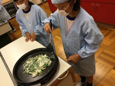 「もちもちや~」と、おいしい感想が飛び出しました。 「おかわりいいですか?」と、5年生。 元気もりもりのチヂミ作り報告です!