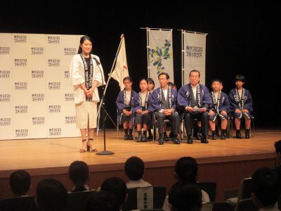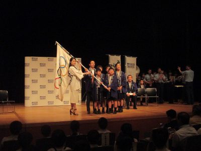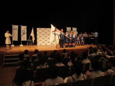 本校の6年生代表10名が参加したのは、イベントの中で行われた「フラッグの引継ぎ」です。
