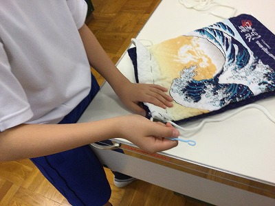 “ひも通し”の用具を使うのも初めてという5年生にとって、貴重な活動です。
