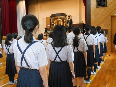 水曜日の朝は、礼拝からのスタートです。心を落ち着け、校長先生のお話を聞きます。