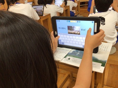 次の時間には、報告してくれた画面をみんなで共有し、それらの画面を背景にして、「♪まきばの朝」を歌唱する計画です。