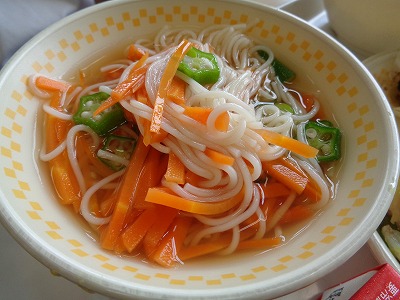 そうめんは七夕の行事食で、無病息災を願って食べられる縁起ものです。さかのぼると、平安時代のころから食べられていたそうです。今日も暑い日でしたが、冷たいお出汁で食べやすいメニューでした。