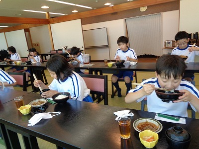 昼食の時間です。とても礼儀正しく、食前の言葉を言えました。誇らしいです。