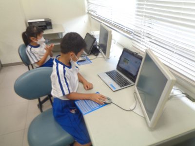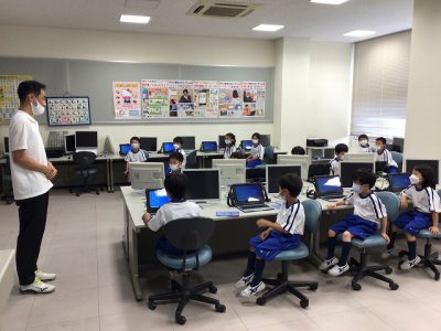 3年生以上は、パソコンのワープロ機能を使い、ローマ字入力で文章作成するカリキュラムになっています。