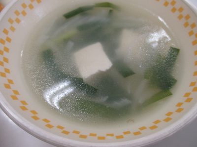 豆腐の中華スープは豆腐、玉ねぎ、ニラの組み合わせでした。ニラは「アリシン」という辛み成分を含んでいます。アリシンは殺菌効果が強く、抗酸化作用があるため、免疫力を高めて風邪を予防する効果があるといわれています。