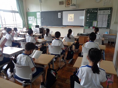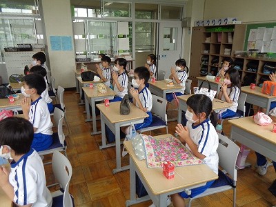 水曜日、静かに合掌して、朝の放送礼拝が始まりました。礼拝の歌をよい姿勢で歌いました。