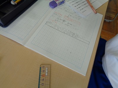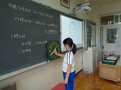 算数は時こくと時間の復習です。24時制で計算すると考えやすいこと、〇分前、〇分後などを時計を使って正確に考えたりしました。