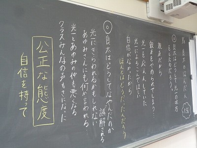 「良太のはんだん」というお話を読み、公正な態度をとることの難しさや、その大切さについてみんなで考えました。