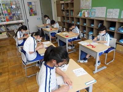 6年生が下学年に優しく丁寧に教えています。大変立派な姿です。