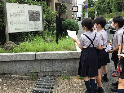 美術館の北側の道路に面した場所に「円勝寺跡」を発見! これは鳥羽天皇の中宮・待賢門院の御願寺です。なお、このお寺の名前が本校・京都文教短大付属小学校の住所「左京区岡崎円勝寺町50」に入っています。