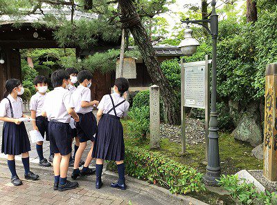 その後、平安神宮を臨みながら教頭先生より、応天門前にあった鳥羽天皇の御願寺「最勝寺」の説明を受けました。ここには石碑はありません。