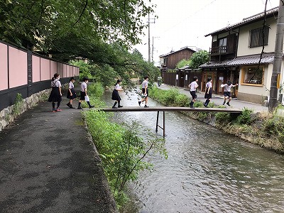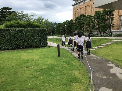美術館のお庭を眺め、白川のそばを通って帰校しました。