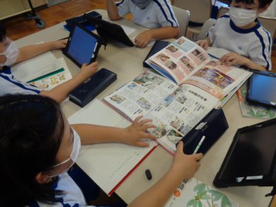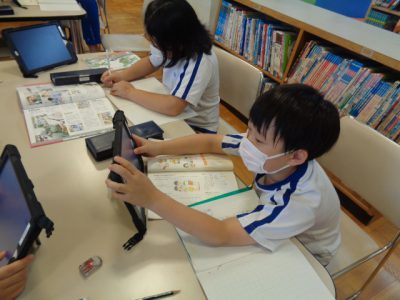 図書室で仕事の工夫ついて調べる活動を行いました。