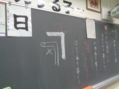 これまで学習してきた横画、たて画に加えて「おれ」を学習しました。